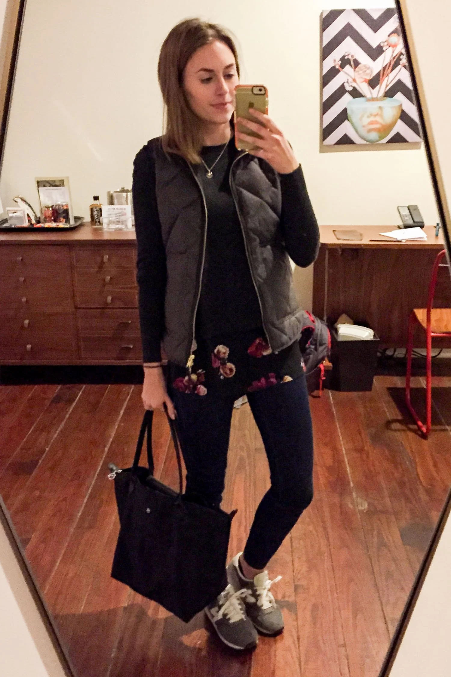 Outfit 3 was not worn to the conference (this was the day I had my bike tour; I changed into Zella leggings for the ride), but it was worn to an evening reception hosted by my department. I changed into my ankle boots for the reception. The vest was the only extra layer I needed over my sweater to keep warm on my ride. It was such a lovely day! (Have you seen the photos?)
